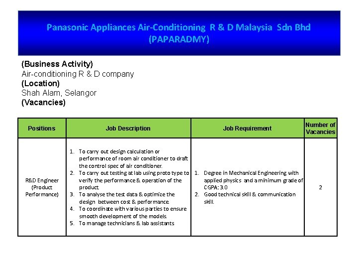 Panasonic Appliances Air Conditioning R&d Malaysia Sdn Bhd Paparadmy 2
